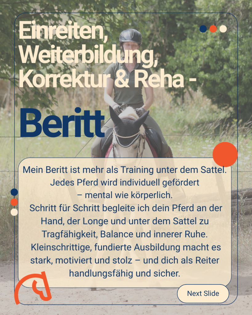 Beritt bedeutet für mich nicht „abgeben und abholen“, sondern gemeinsam einen Weg zu gehen – für ein Pferd, das sich verstanden fühlt und gerne mitarbeitet.